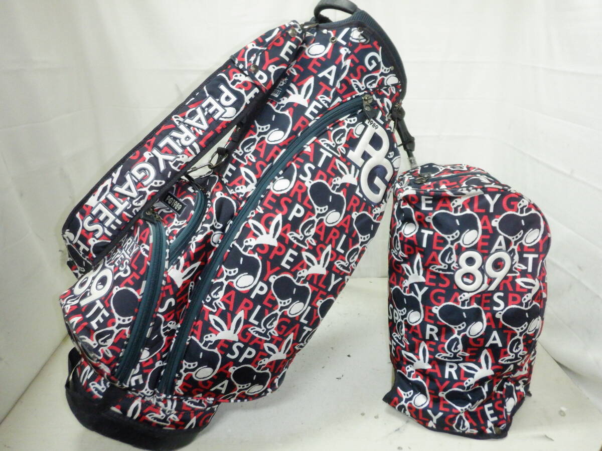 - PEARLY GATES★スヌーピーコラボ★パーリーゲイツ★9.0型★中古★スタンド(NV×総柄)ゴルフ キャディバック