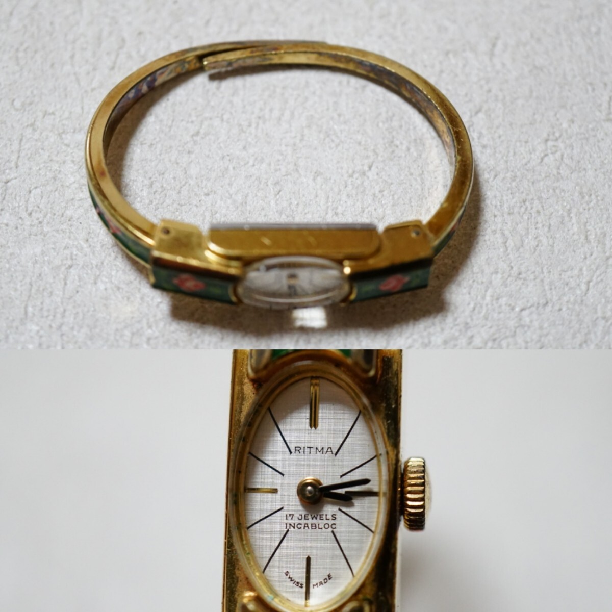 - F2027 RITMA/リトマ SWISS 17石 手巻き レディース 腕時計 バングル 腕輪 アクセサリー スイス ブランド クォーツ 不動品 訳あり 汚れ