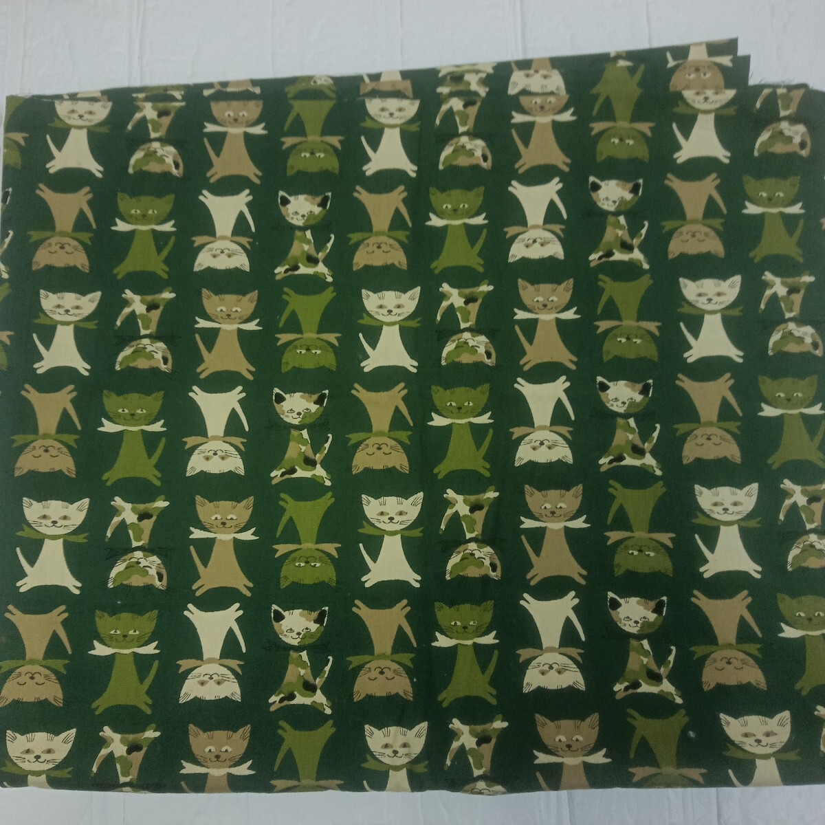 - 100円〜 はぎれ・小物作り用生地 ハンドメイド材料【緑色 猫の柄】89cm×280cm