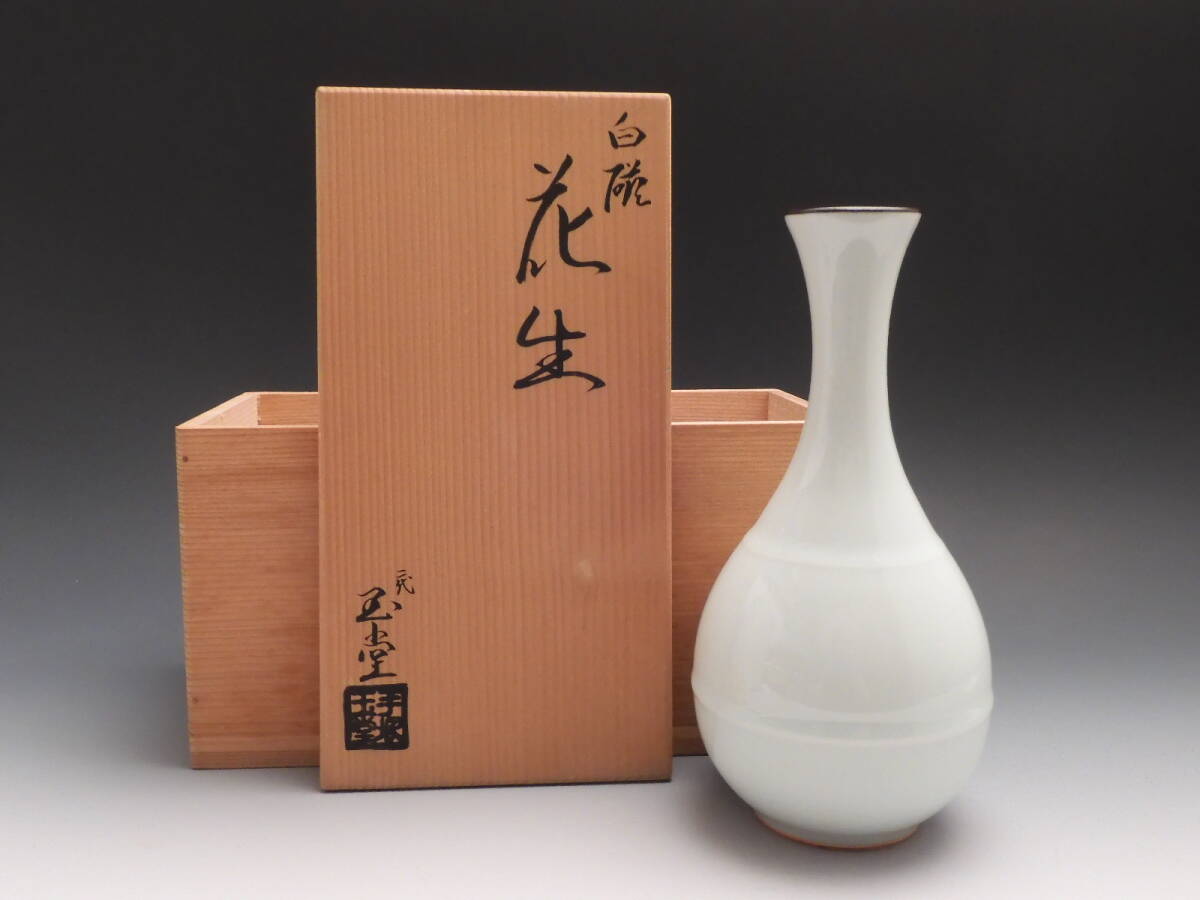 - ◇桔◇手塚 玉堂 造 白磁 花生 23.5㎝ 花入 花瓶 共箱 共箱 未使用 E19