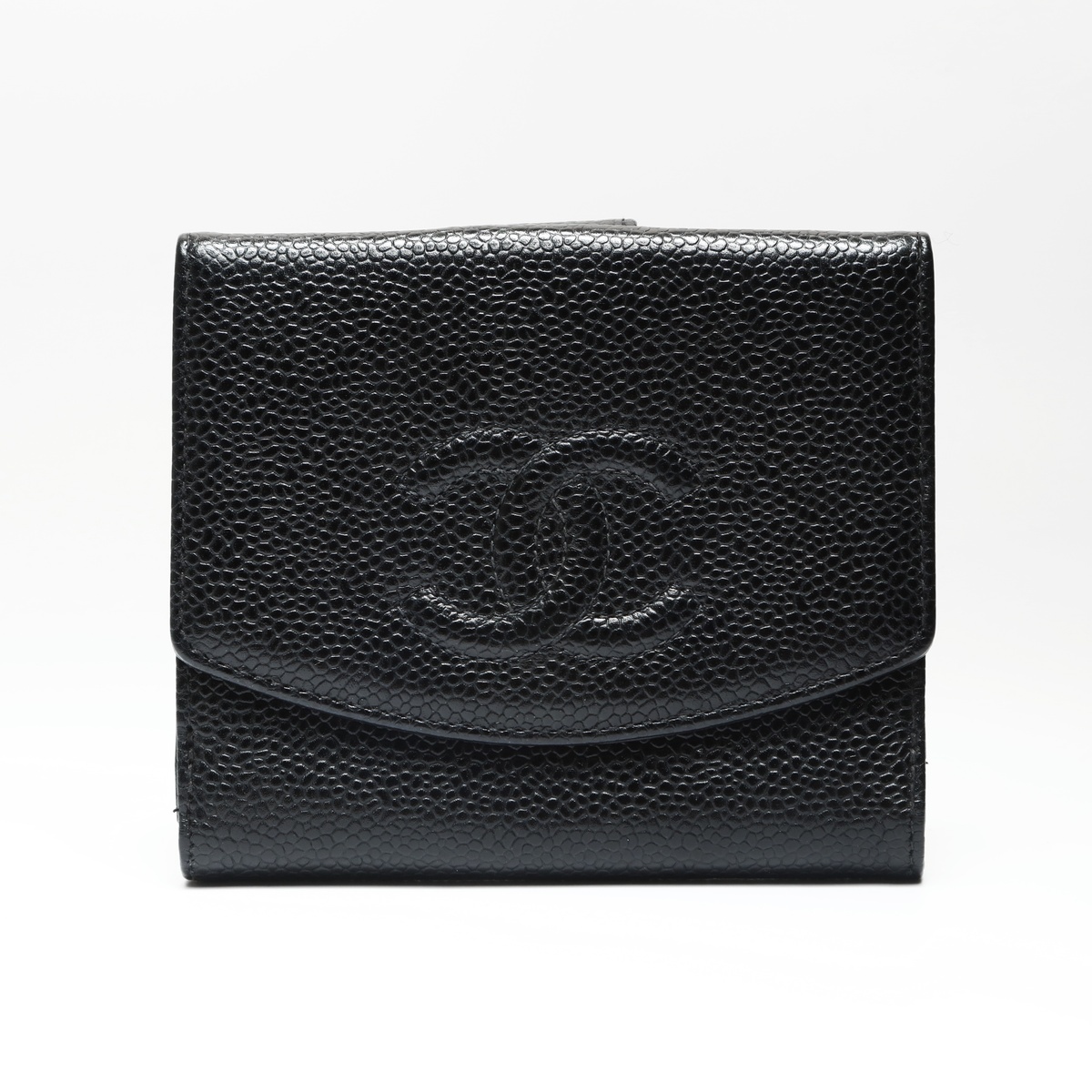 > シャネル CHANEL 二つ折り財布 6番台 2000-2002 キャビアスキン ココマーク ブラック
