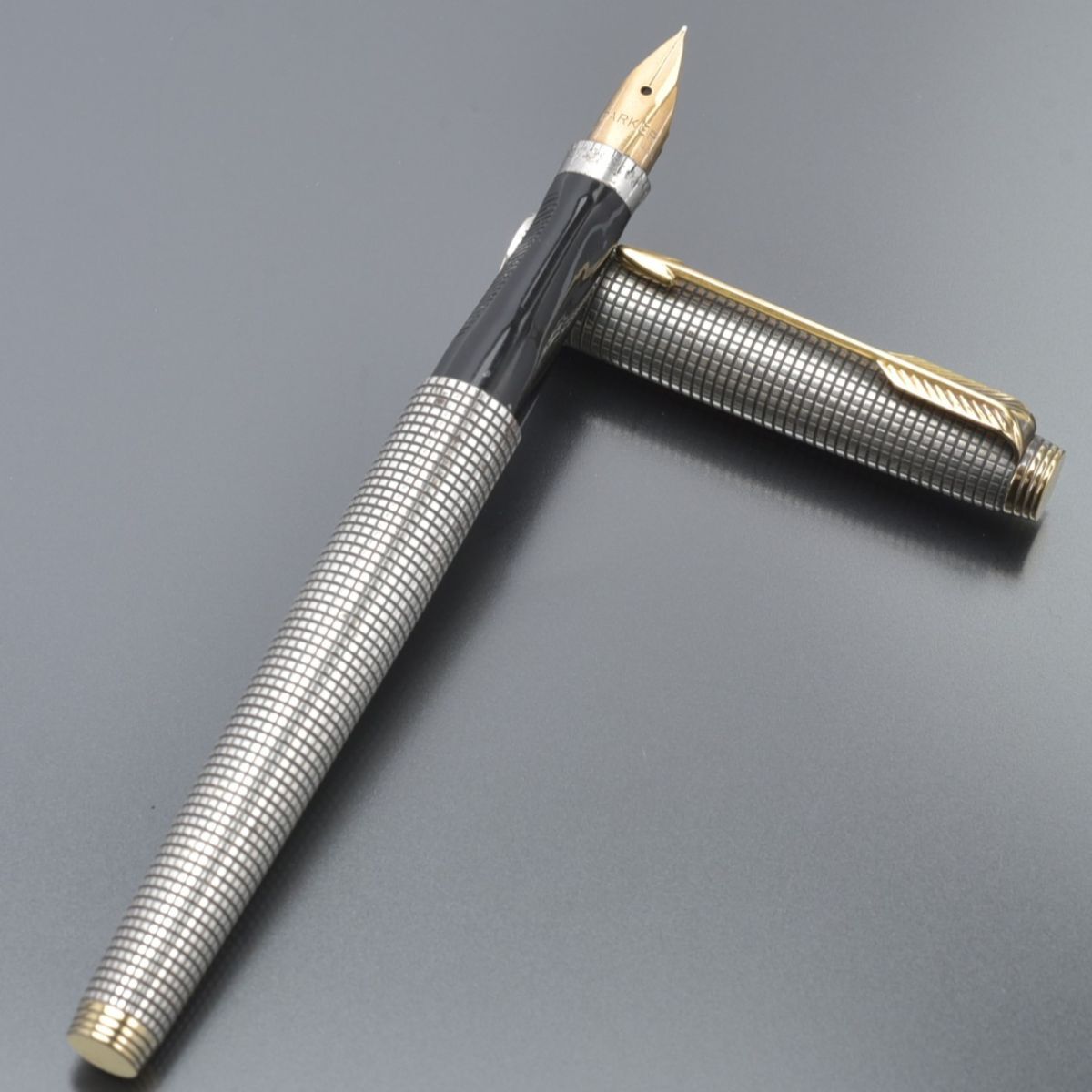 - 美品 PARKER SV 万年筆 ペン先14K/XF STERLING SILVER フラットトップ シズレ 格子柄 スターリングシルバー パーカー #N※C832