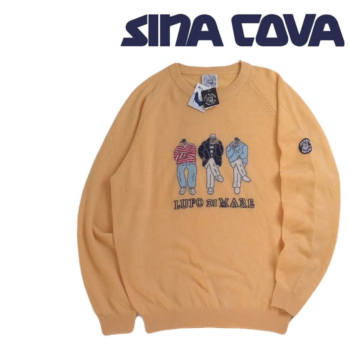 > 特大LL 新品タグ付 少し訳有 カシミヤ100% SINA COVA 蓄熱保温 軽量 刺繍ワッペン ニット セーター メンズ シナコバ マリン カプリ 2510275