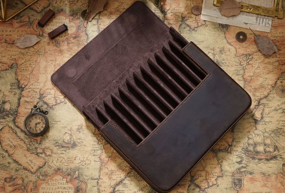 - ペンケース 筆箱 ふで箱 スリム 12本差し 収納 ポーチ 革小物 文房具 本革 牛革 レザー 上品 軽量 コンパクト シンプル 大人 ギフト