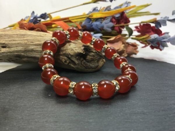 > パワーストーン ブレスレット 赤メノウ 12mm 天然石ブレス ゴールド 開運 浄化 数珠ブレス メンズ 男性♪