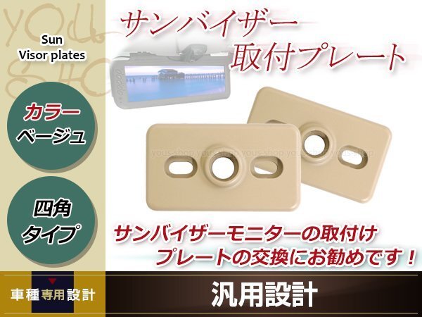 - サンバイザー モニター 取付けプレート 2個セット ベージュ 四角 長方形 プレートタイプ 約62㎜×36㎜ プラスチック取付具 金具