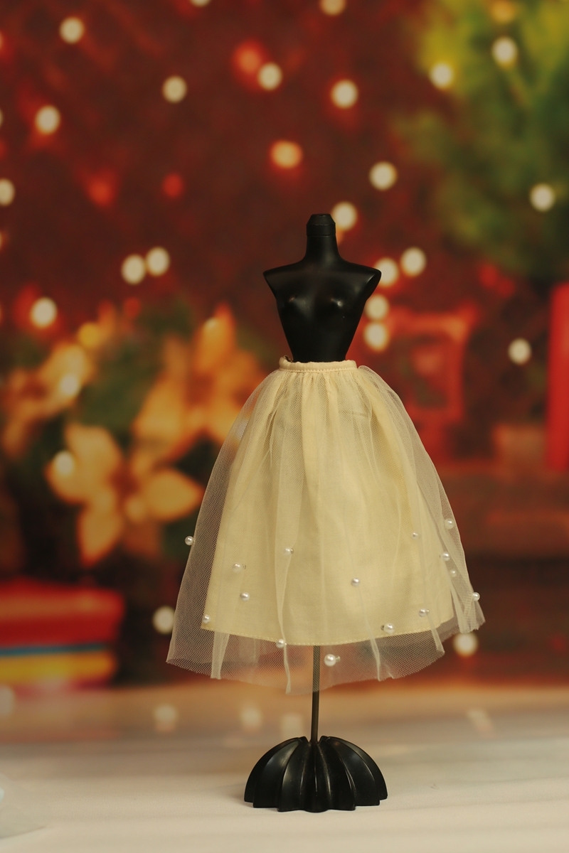 - 人形服S112-015ベージュチュールビーズスカートmomoko、ジェニー、OBITSUボディ、MISAKI、ピュアニーモ