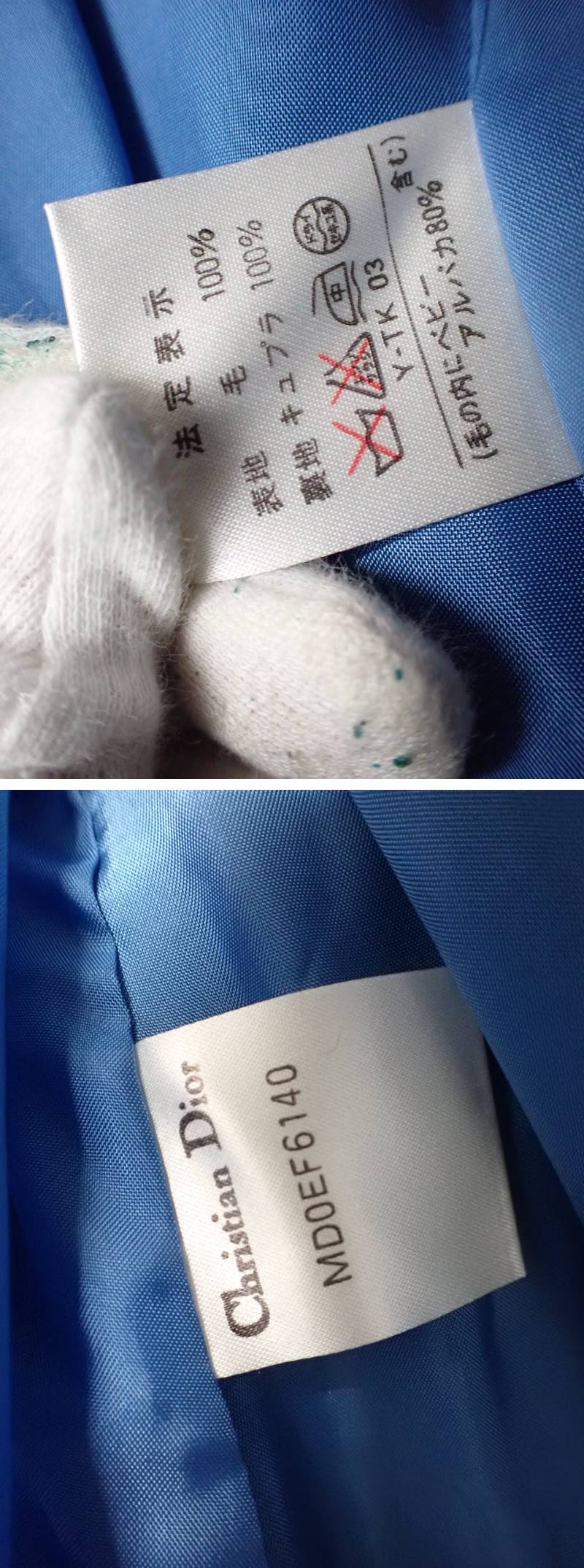 > M735/14G〇Christian Dior クリスチャンディオール Dロゴ チャーム Aライン コート 水色 中古品〇