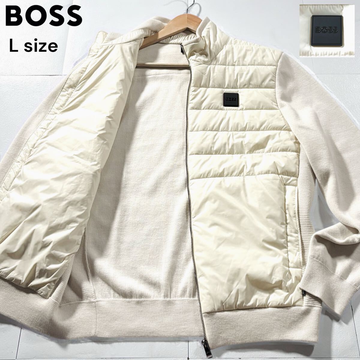 - 極美品/Lサイズ●現行タグ HUGO BOSS ヒューゴボス ニット切替 中綿 ジップ ジャケット ナイロン アウター ロゴワッペン ロゴタグ 大谷翔平