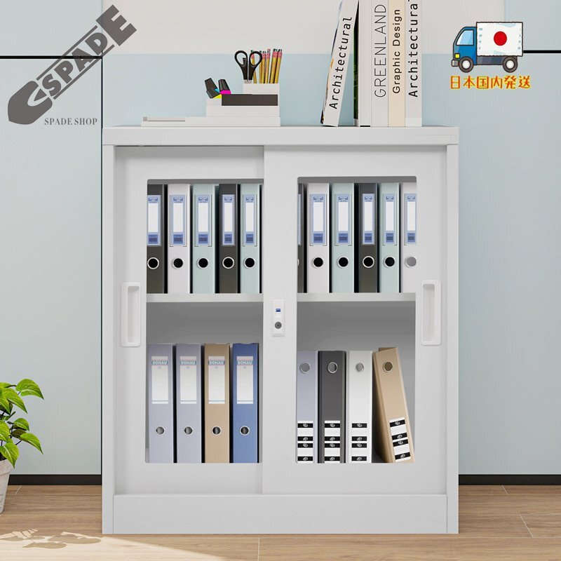 - 【国内発送】スチール書庫 引き戸タイプ 書類保管庫 保管庫 収納 オフィス キャビネット スチールキャビネット ベース付き 可動棚