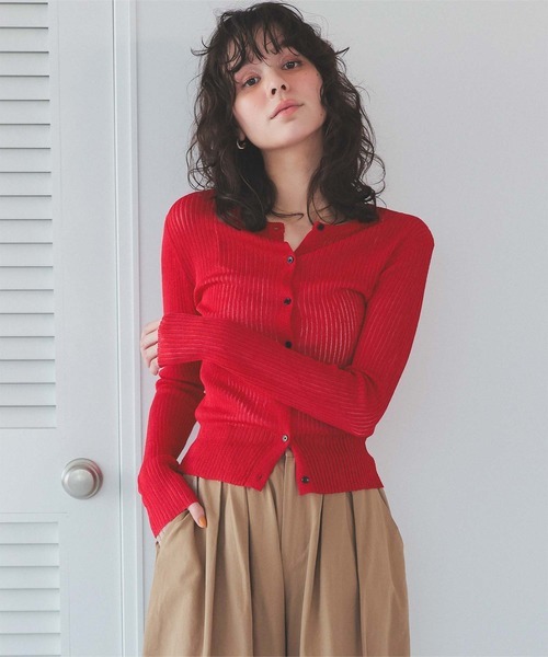 - 「titivate」 ニットカーディガン L レッド レディース