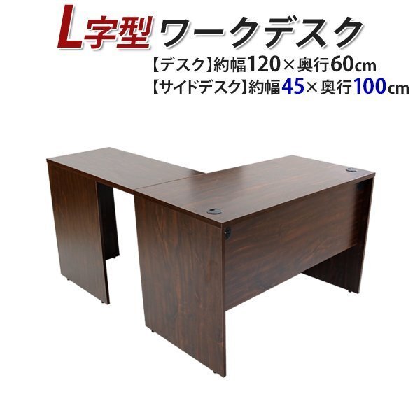 - 送料無料 ワークデスク L字型 約W120×D160×H74 幕板 ゲーミングデスク L字デスク L型 サイドデスク 連結 オフィス 右用 ウォールナット