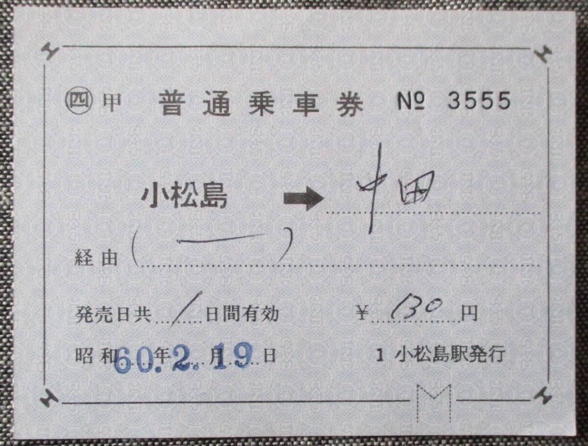 - 国鉄/四国総局 (小松島線) 小松島駅 軟券乗車券(補片) 小松島→中田
