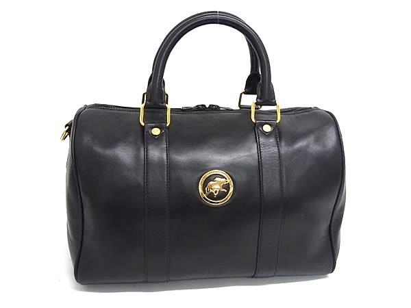 > 1円 ■美品■ HUNTING WORLD ハンティングワールド レザー ハンドバッグ トートバッグ ミニボストン レディース メンズ ブラック系 FS5640