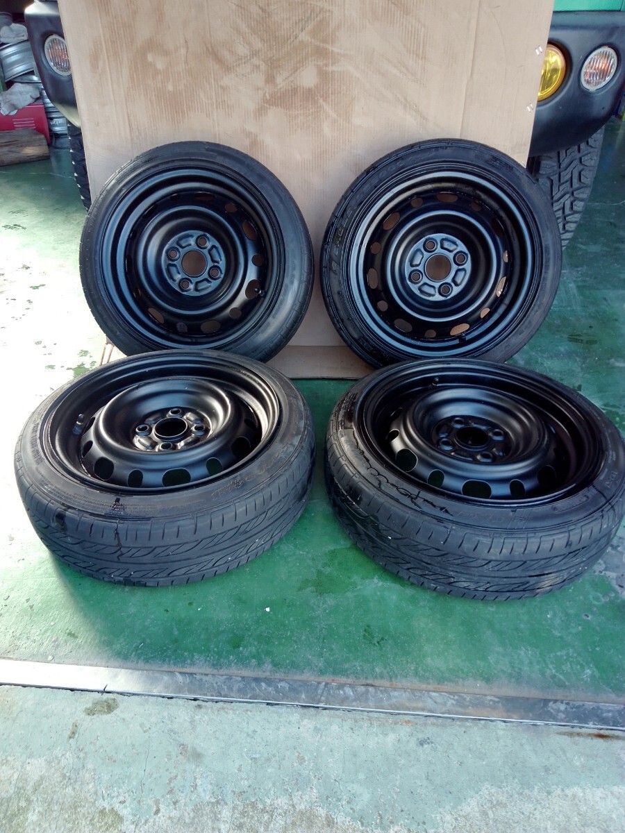 - (MRT)155/55R14 サマータイヤ+マツダ デミオ純正スチールホイール 6J ヒッパリ ミラジーノ エッセ等 4本