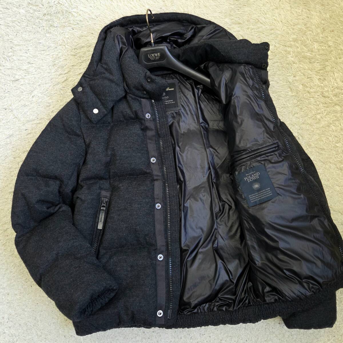 - 西川ダウン×ナノ&コー【ポーランド】nano&co ダウンジャケット アウター ダウン&フェザー Wジップアップ フード着脱 牛革 ダークグレー S