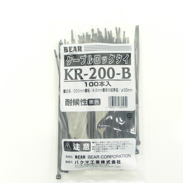 - 【新品】ケーブルロックタイ 200mm 黒 耐候性 100本入 結束バンド