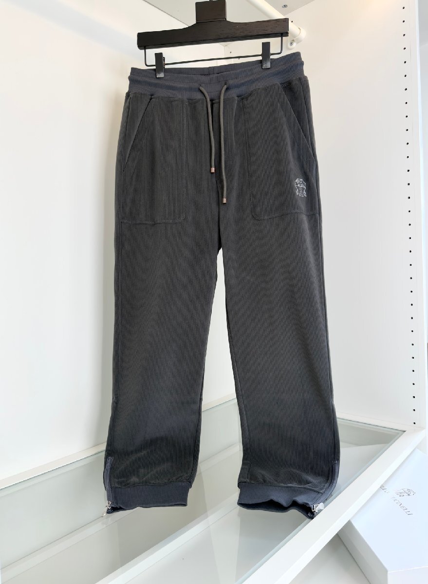 - グレーM★送料無料★ブルネロクチネリ★メンズ コーデュロイ ジョガーパンツ, ドローストリング付き, ジッパー裾, スリムフィット