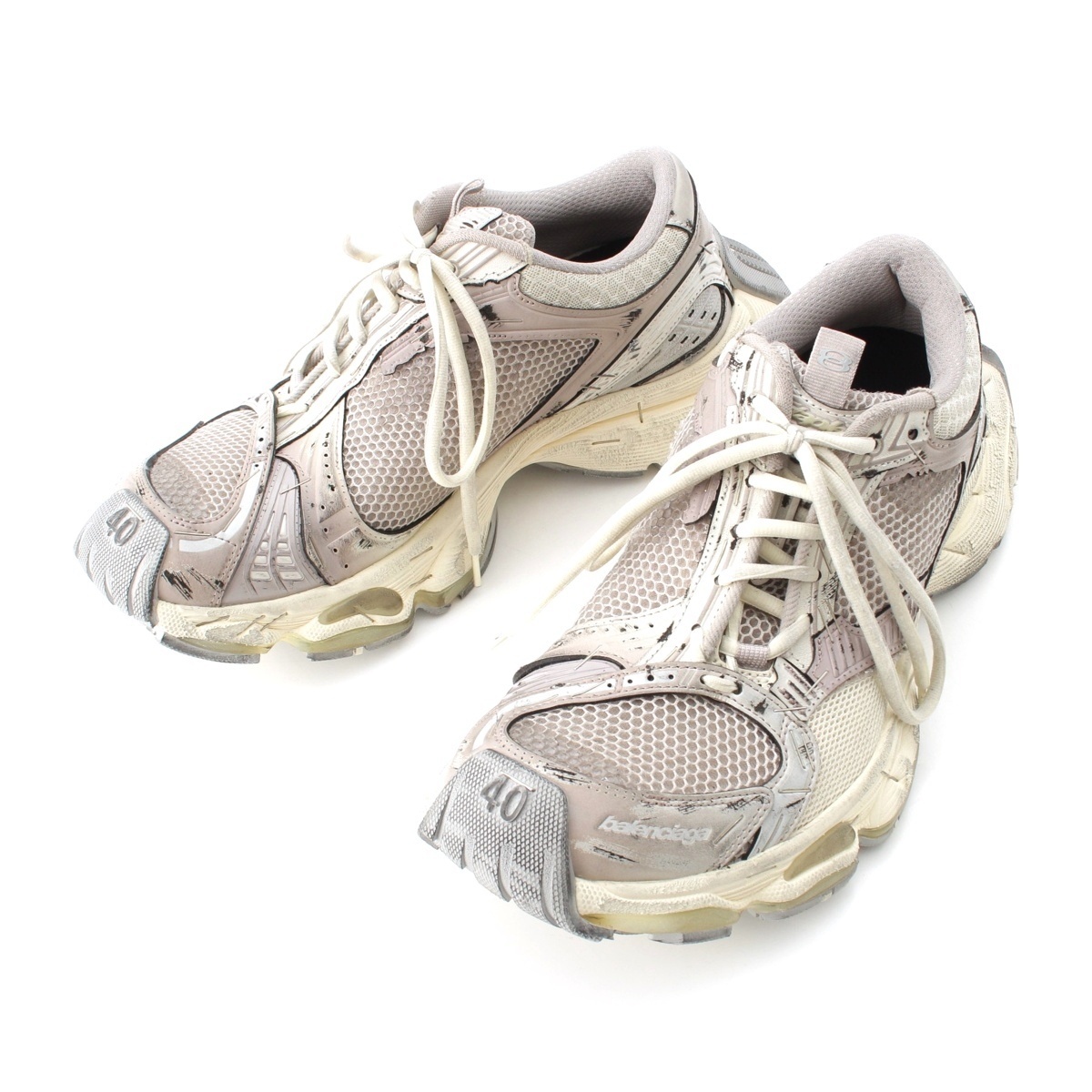 - バレンシアガ Stapler ステイプラー メッシュ ロゴ ダメージ加工 スニーカー 803681 グレー 26.5cm【中古】