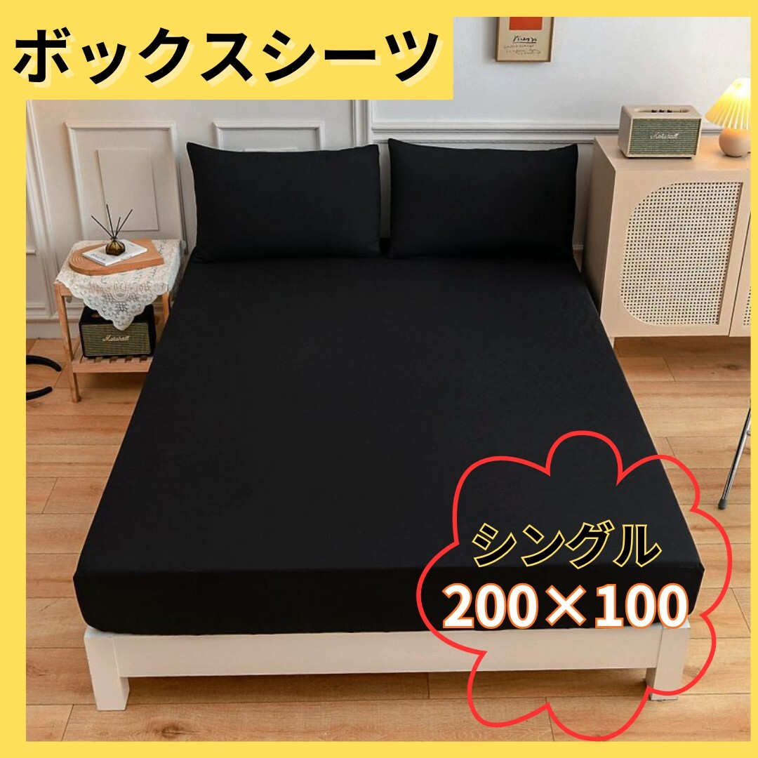 - 黒 ボックスシーツ ブラック シングル ベッドシーツ 無地 寝具 シーツ ベッドカバー オールシーズン
