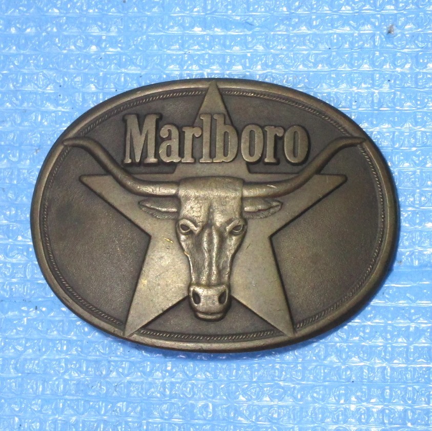 - 80年代Marlboroマルボロ真鍮製ベルトバックル/フィリップモリス社純正ソリッドブラス/ロングホーンワンスターウエスタンロデオカウボーイ