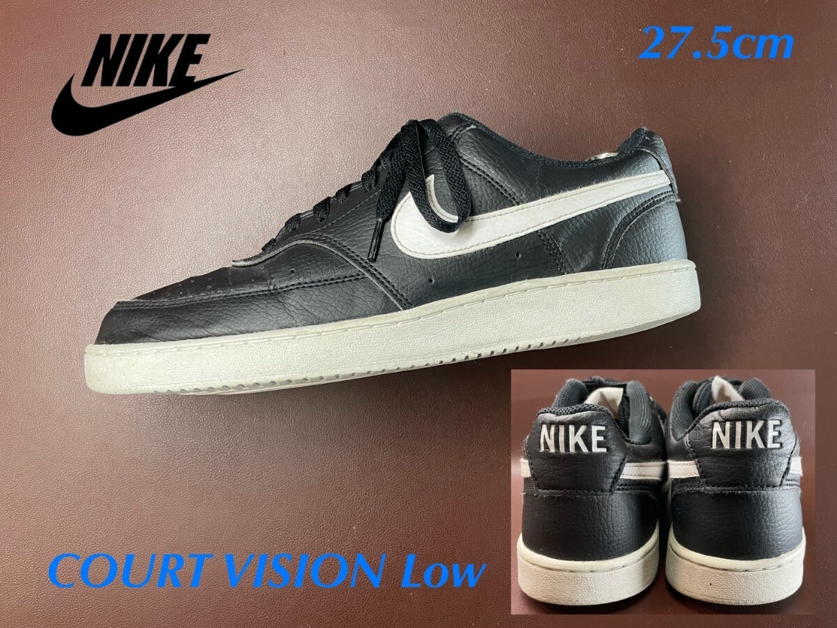 - 名機降臨!希少シボレザーファブリック!ナイキ【コートビジョン】ローカツットレザースニーカー!ブラック×ホワイト 27.5cm/US9.5