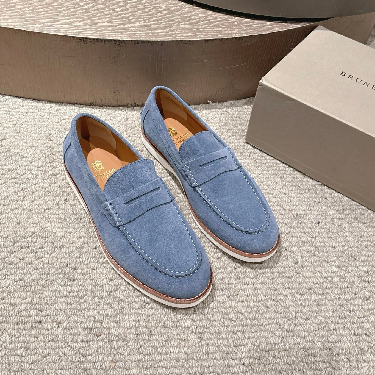 > グレーブルー25.0cm ★送料無料★ブルネロクチネリ★メンズスエード ペニーローファー, ホワイトソール, カジュアルシューズ