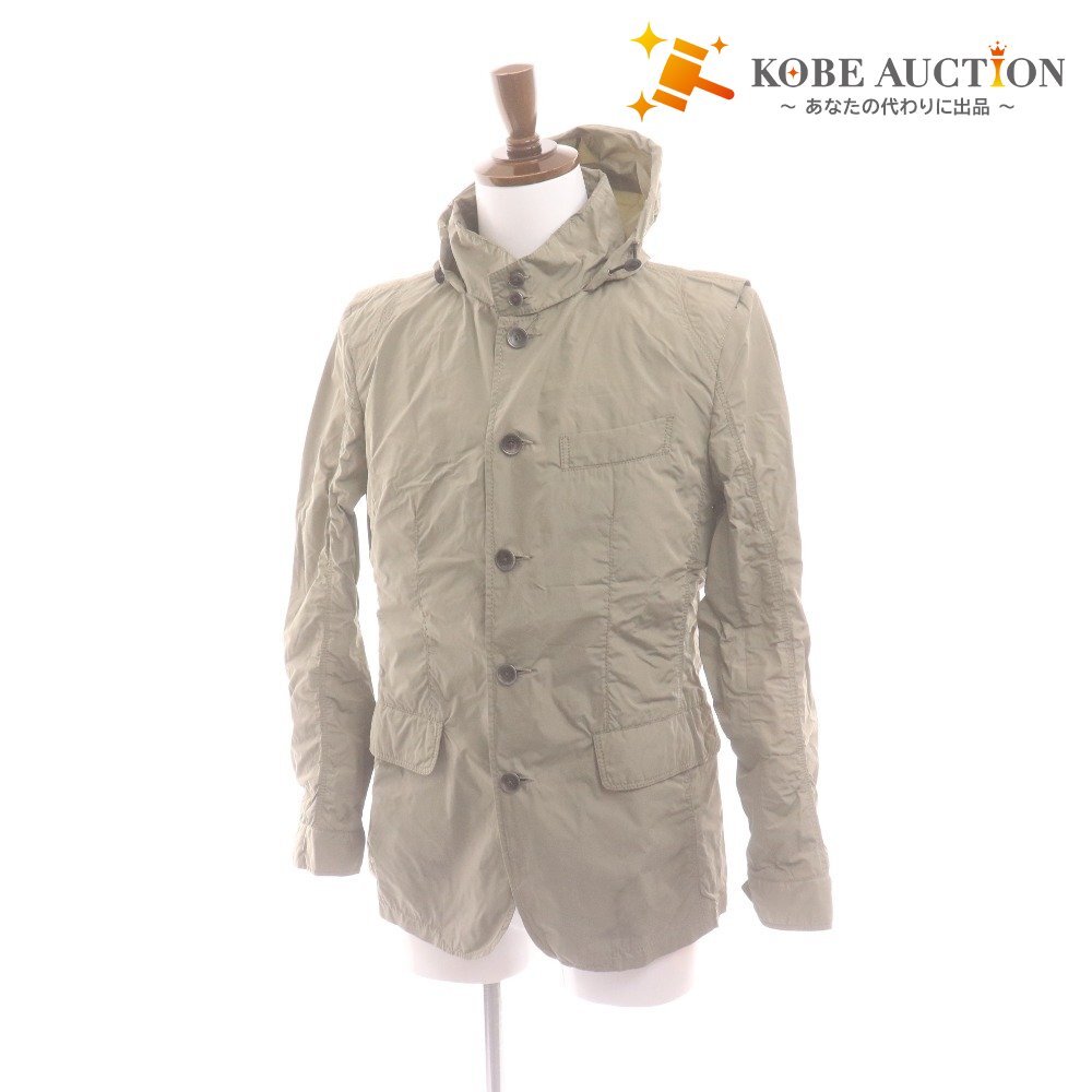 > ■ TOMORROWLAND テーラードジャケット ウインドブレーカー 長袖 アウター フード収納可 シャカシャカ 襟 メンズ 48(M相当) カーキグレー