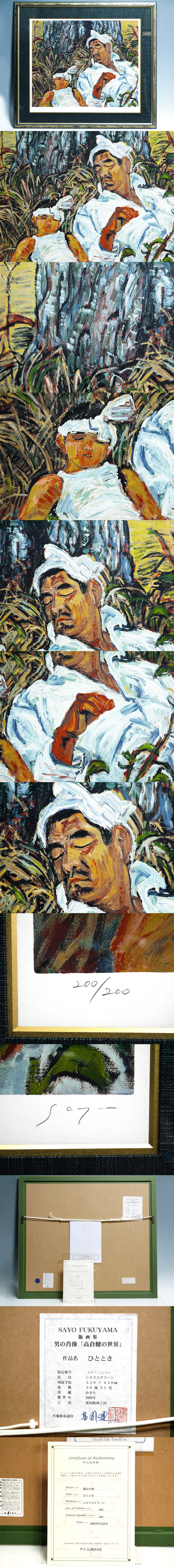 > //福山小夜/ シルクスクリーン 男の肖像 高倉健の世界 ひととき//サインあり/ed.200/額装:77×86cm/真作保証//