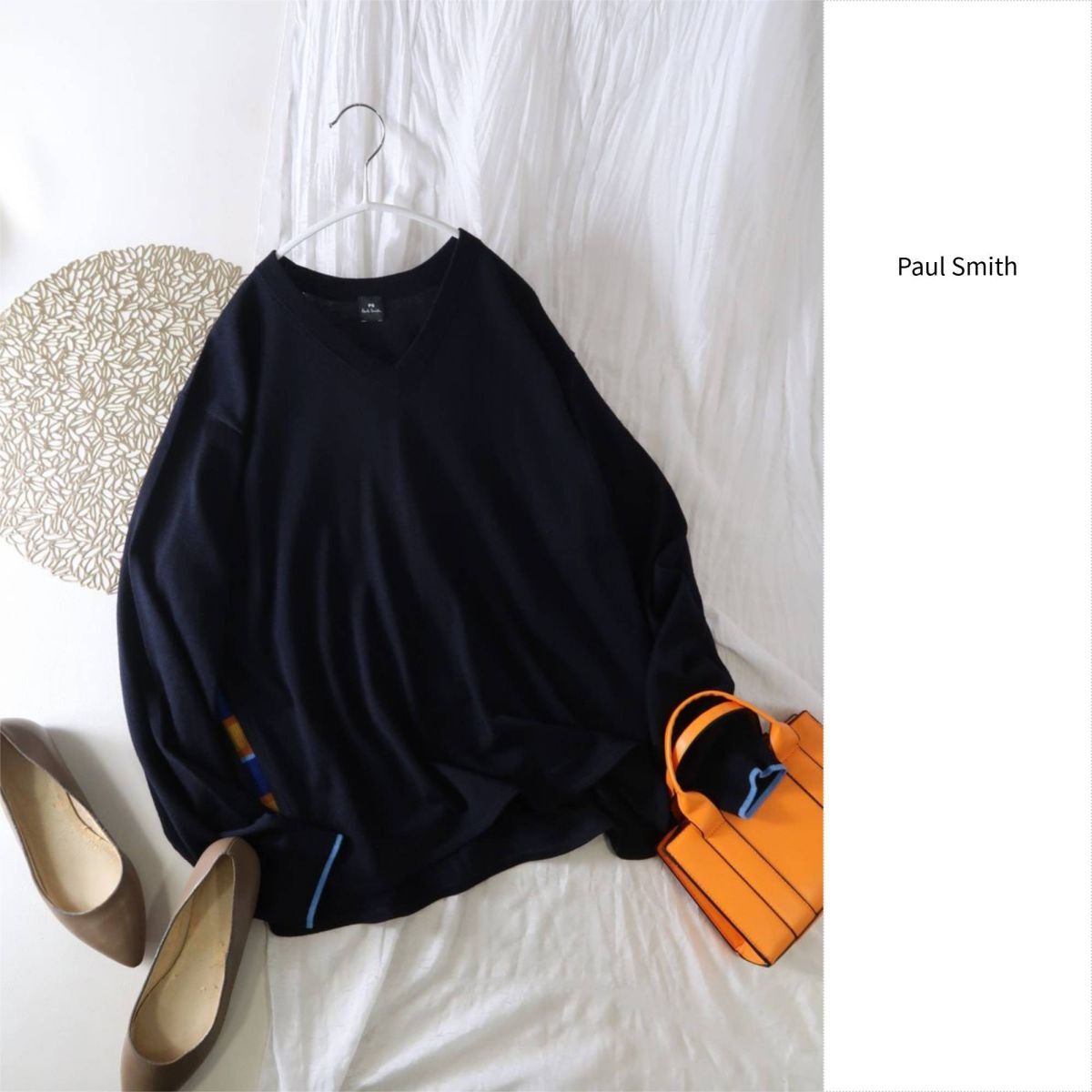 > ポールスミス Paul Smith☆大きいサイズ☆毛100% サイド切替 Vネックニット XXLサイズ☆E-M 6285