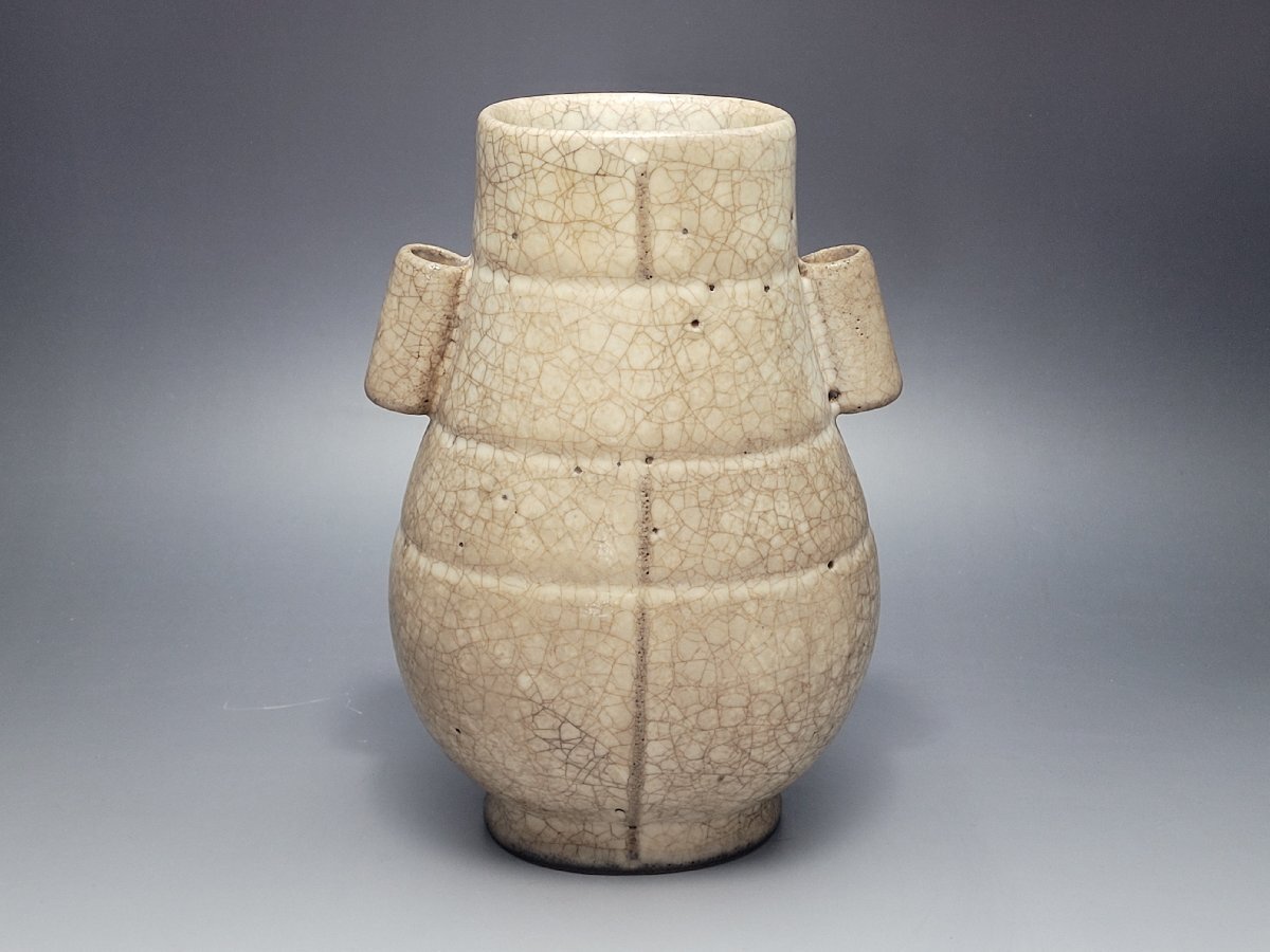 > 白釉 貫入 両耳 花瓶 時代唐物 高さ約22.2cm / 宋元時代 花瓶 飾瓶 花插 茶道具 茶器 人間国宝 李朝 高麗 古玩 古董