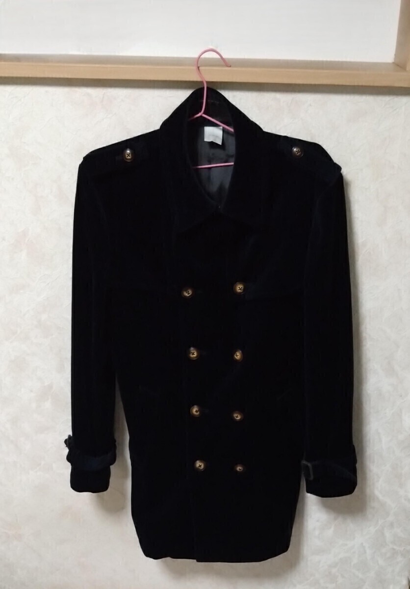 - abx エービーエックス ベロア生地 コート ネイビーカラー ストライプ サイズ3 チェスト94〜102 コットン99% 合成皮革