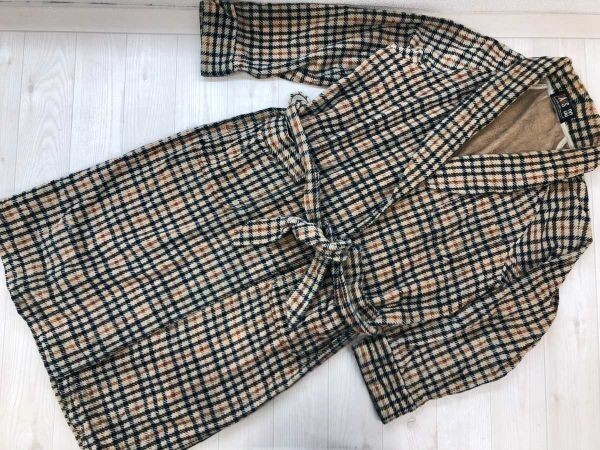 > ダックス DAKS レトロ オールド トラッド チェック総柄 起毛 フランネル ショールカラー ガウン コート メンズ 綿100% 裏パイル L ベージュ