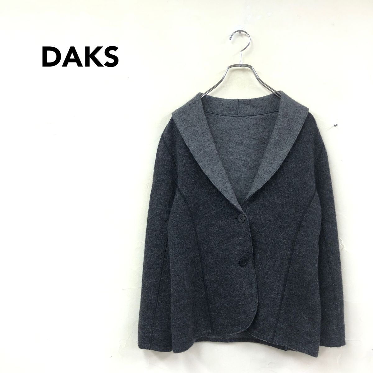 > 2O3222-K◆日本製 DAKS ダックス ショールカラーニットジャケット◆size38 チャコールグレー ウール100% 軽量 カジュアル レディース
