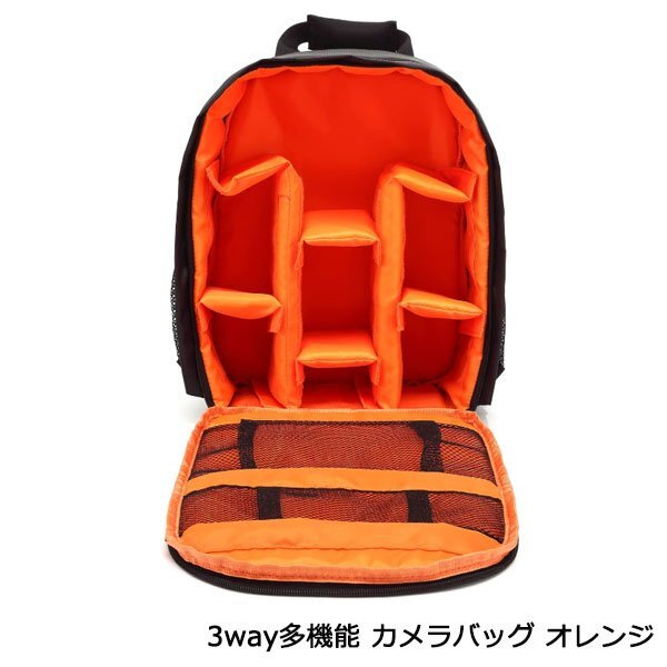 - カメラ リュック バッグ 大容量 撥水加工 多機能 耐衝撃 防水 一眼レフ 仕切り 収納 かばん バック 可動式仕切り オレンジ 橙