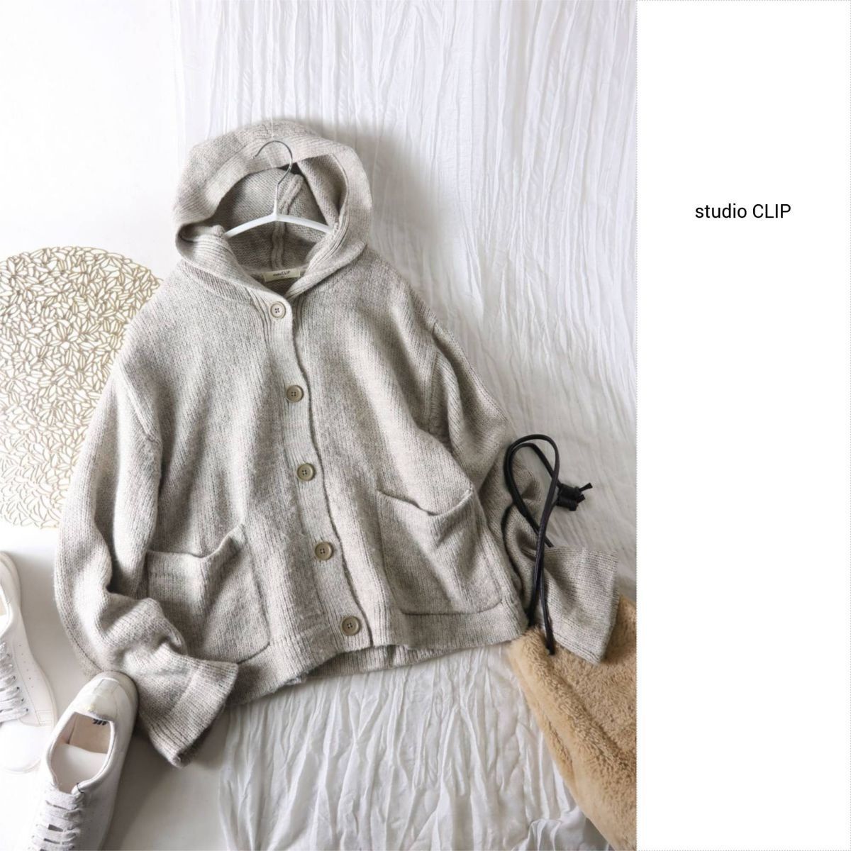 - スタジオクリップ STUDIO CLIP☆洗える ウール混 3ゲージフーディカーディガン Fサイズ☆M-B 5816