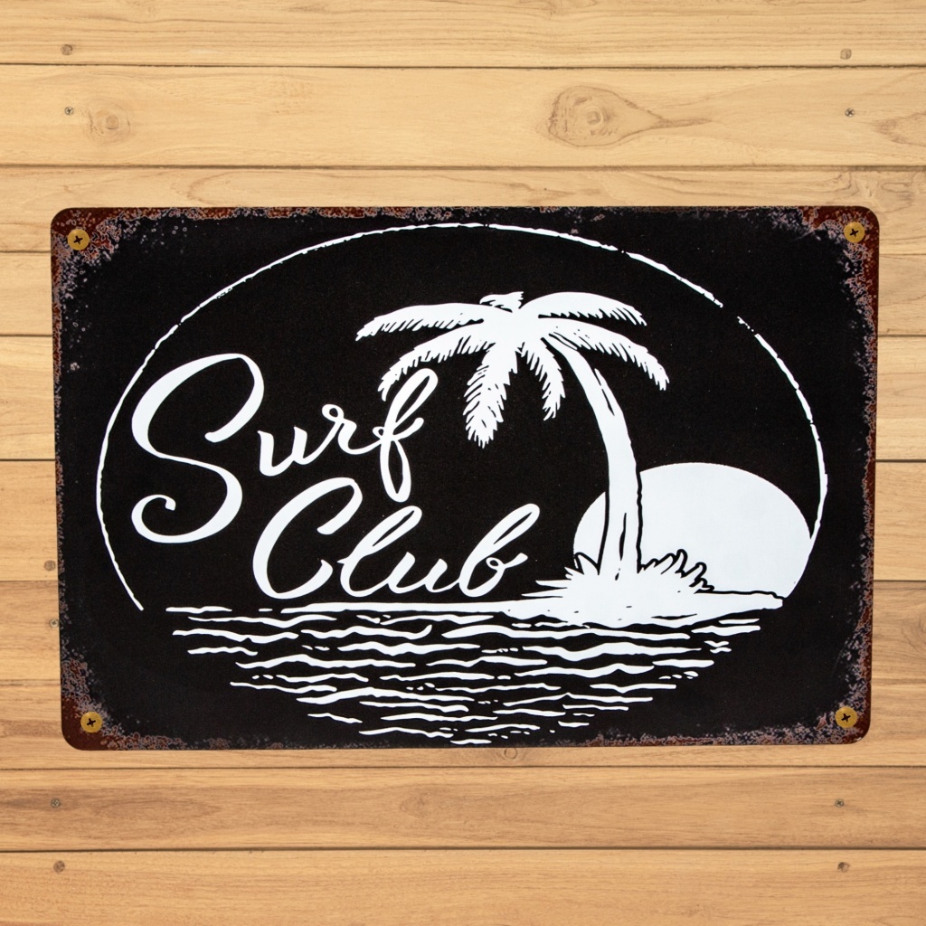 - ヤシの木とムーンライト Surf Clubのブリキ看板 新品
