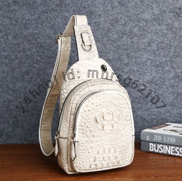 - 新品 クロコダイル本革 ワニレザー メンズバッグ 斜め掛け ボディバッグ 大容量 本革 センター取り アウトドア スリングバッグ