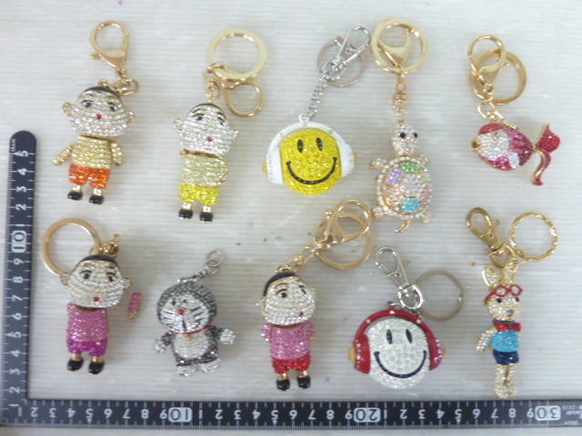 - T724 キャラクター 様々 ラインストーン キーホルダー まとめ 計10点 ドラえもん/クレヨンしんちゃん/ニコちゃん/うさぎ/カメ/金魚/他