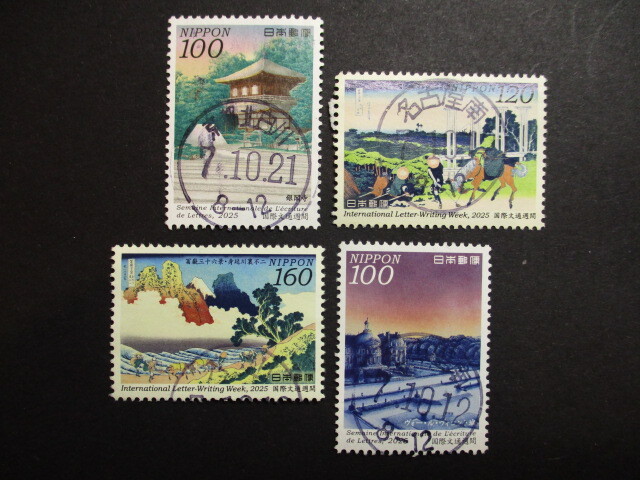 - 使用済 令和7年国際文通週間 意匠対応局満月印含4種