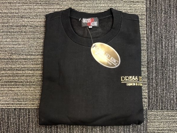 > 在庫のみ 希少ドレキントレーナー 黒(クロ) ロゴ刺繍 着心地抜群 裏起毛で暖かい表100%綿素材ドレスアップキング 旧車VIP 未使用保管品