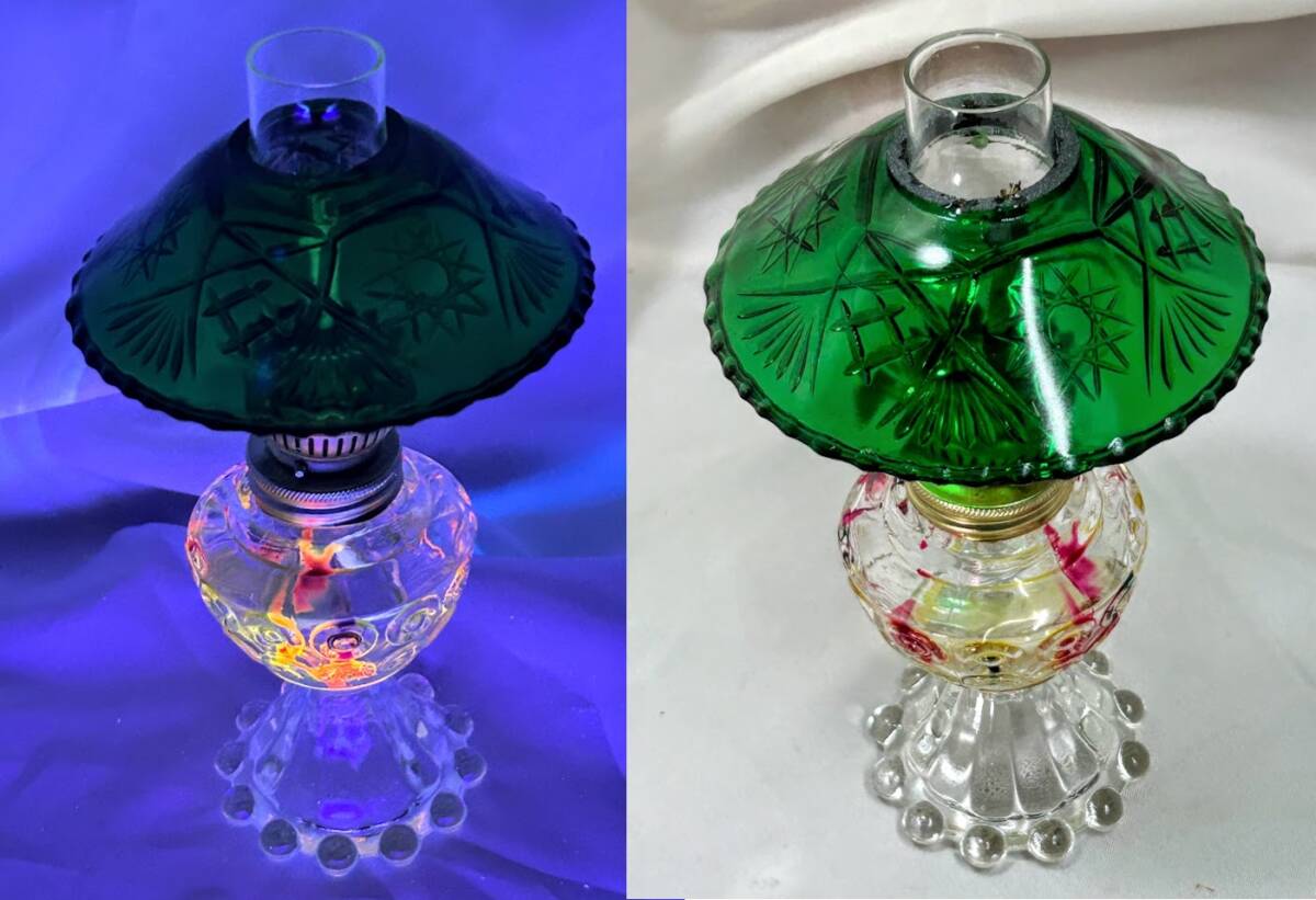 > ビンテージ/レトロ 当時物 ポップ プレスガラス 気泡有 ランタン/オイルランプ/アルコールランプ used コレクション 古道具 アンティーク