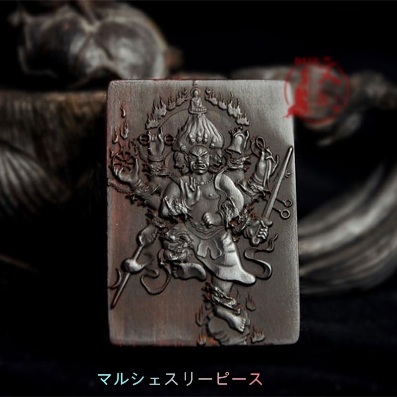 - 木彫りの仏像 烏枢沙摩明王 天然木 高密度 小葉紫檀 シタン 紫檀木(トイレの神様)お手洗い 洗面所の守り本尊 開運梵字護符「烏枢沙摩明王