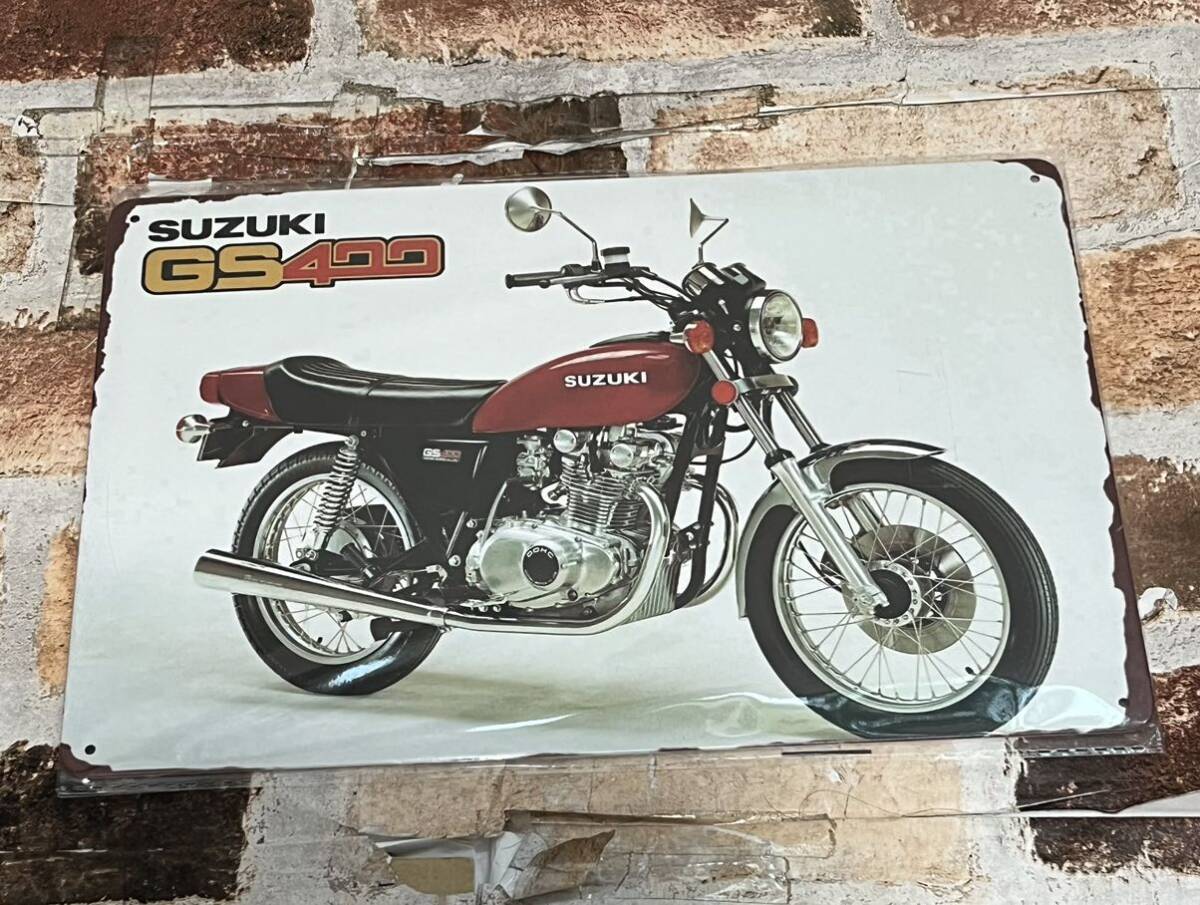 - SUZUKI GS400 GS赤 【1】ブリキ看板 プレート スズキ 旧車 昭和レトロ ヘッドライト ゴキ ザリ