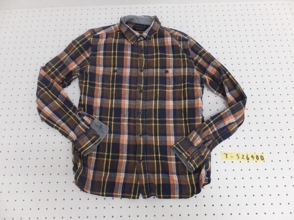 > RAGEBLUE レイジブルー メンズ 胸ポケット チェック長袖シャツ 黄色紺オレンジ白