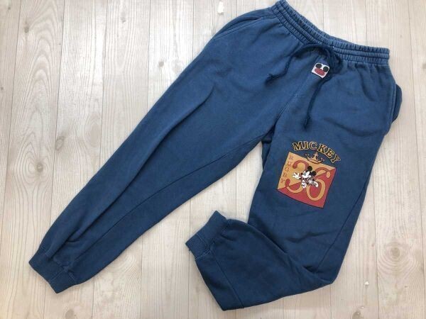 - MICKEY&CO. ミッキー DISNEY ディズニー オールド 90s キャラクター 古着 スウェット パンツ ボトムス ラグビー プリント キッズサイズ 青