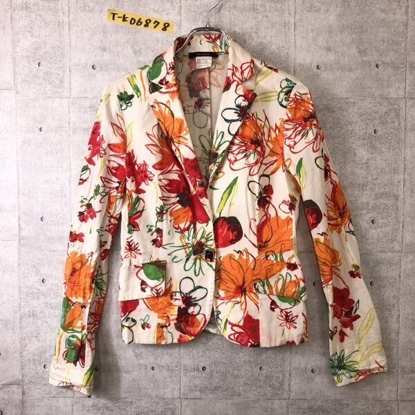 - SFIZIO レディース ボタニカル イタリア製 ストレッチ ジャケット 春秋 オフホワイトMIX