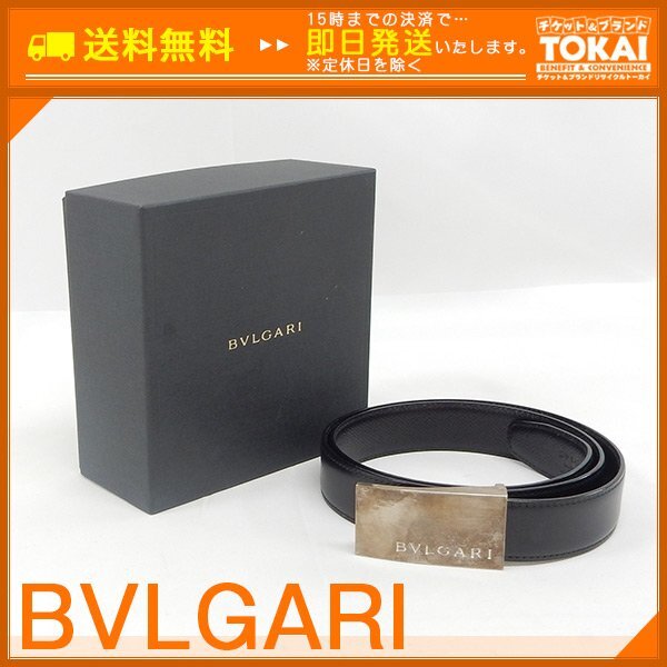 - ★JU01 [送料無料/中古品] ブルガリ BVLGARI ロゴ プレート レザー ベルト 26314 ブラック×シルバー