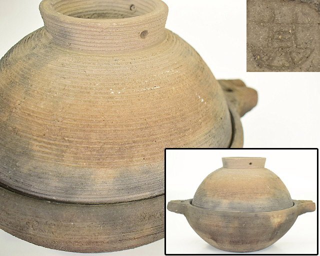 Y206 【泉美】民芸品 釜 土鍋 蓋付 茶釜 茶道具拍卖