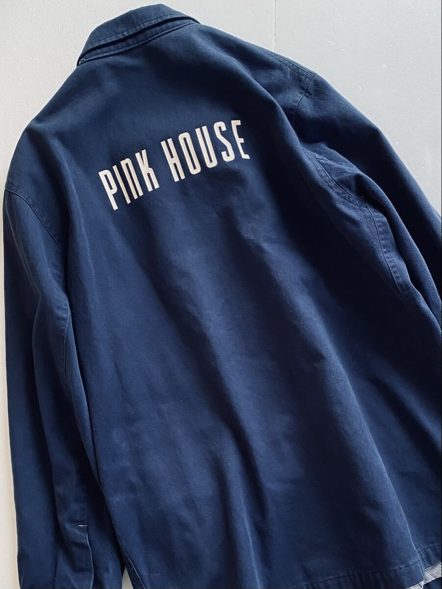 > ビンテージ◆美品◆PINK HOUSE ピンクハウス カバーオール ワークジャケット メンズ サイズL カールヘルム 金子功 ブランドロゴプリント